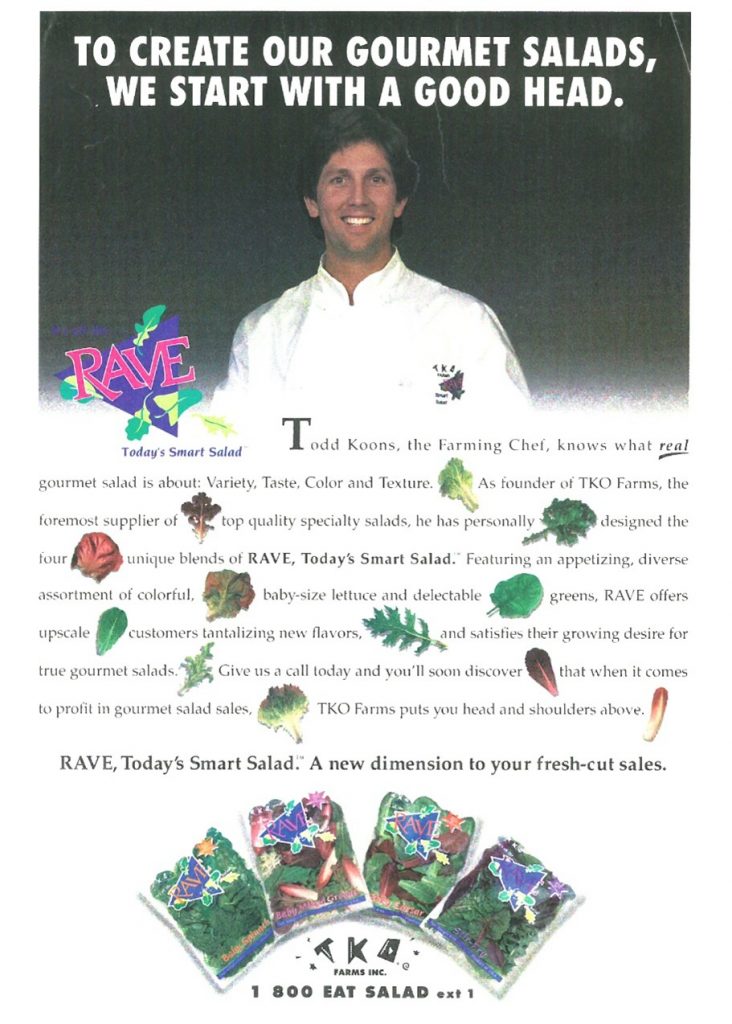 1994年、アリスウォータースから紹介された「シェパニース」でシェフをしていた生産者からオーガニック栽培のベビーリーフの輸入を始めました。 色々な野菜の幼葉を摘み取ってミックスした野菜を石田会長は「ベビーリーフ(BabyLeaf)」と名付けました。今では世界各国でもベビーリーフという名前が浸透しています。 石田会長はカリフォルニアで自身が感動したサラダを日本人にも知って欲しいと「ベビーリーフ」を広めることに奮闘しました。