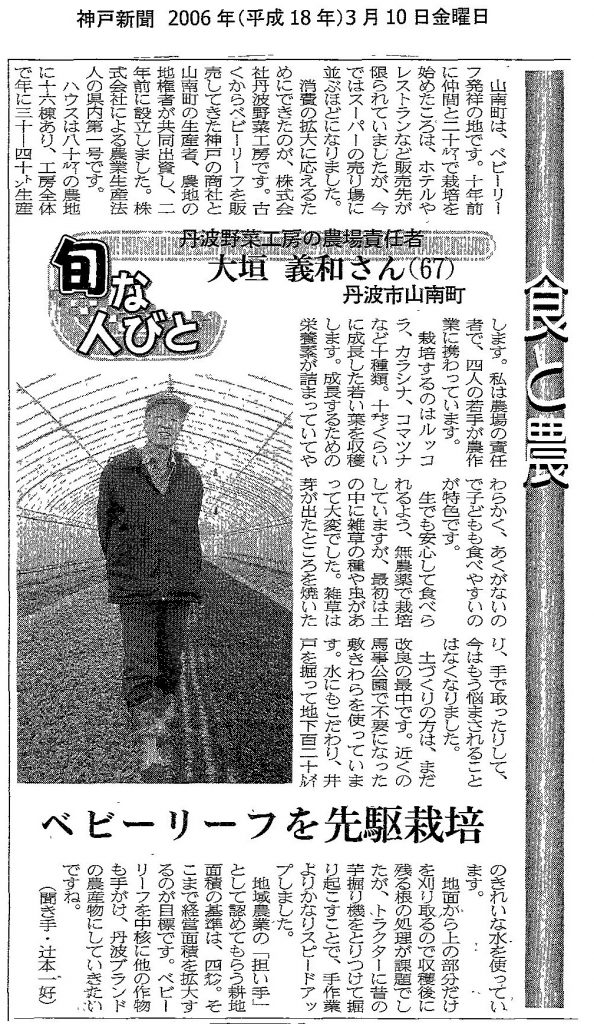 ベビーリーフの栽培と販売が軌道に乗った2006年、ベビーリーフの生誕の地丹波市山南町に自社農園となるベビーリーフ専用圃場「株式会社丹波野菜工房」を設立します。