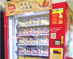 国内でのりんごの消費量は徐々に減っており、家庭でリンゴを食べない人も増えていることから、りんごを食べる新しい機会を提供していきたいと開発しました。世間での認知度が上がるきっかけとなったのは、2011年1月に設置した「りんご自販機」から。水が売れるんだから、りんごも自販機で売れる。